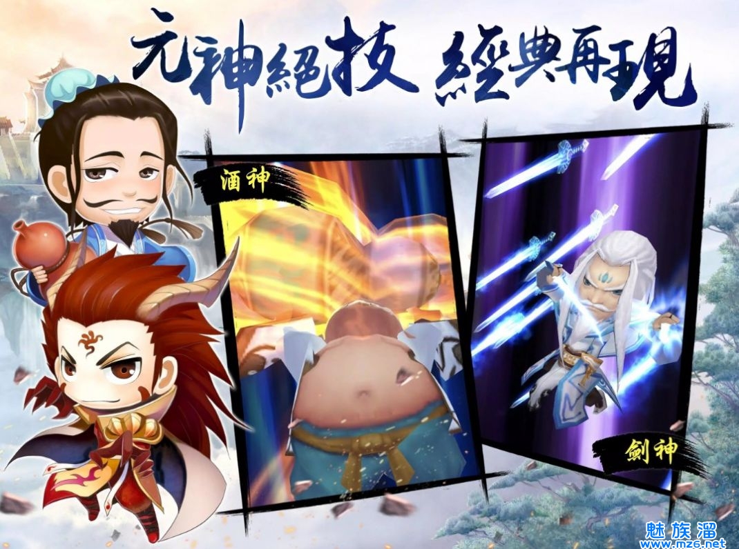 2、Q版水墨画风,别具一格的画面呈现,打造独特的仙侠世界;