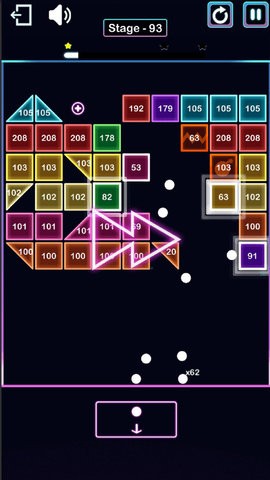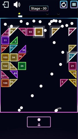 2、轻松挑战的玩法,方块的数量会越来越多,尽量用更少的球来消除更多的球。