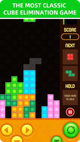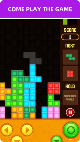 2、拖动你的手指头来正确引导不一样样子的方块和摆脱砖头,如果你做一行的情况下。