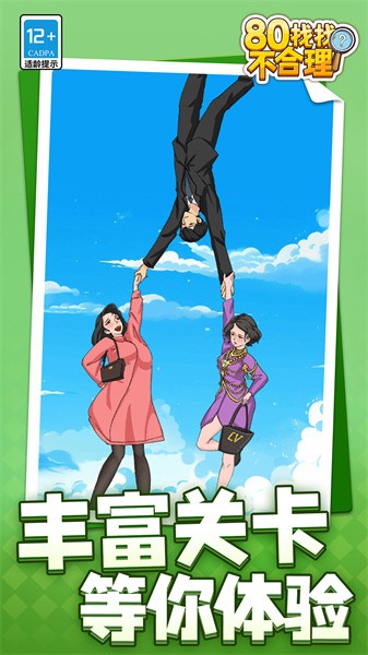 80找找不合理是一款画面精致的角色扮演类闯关小游戏,游戏主打找茬玩法,每一个关卡都会为玩家提供一个独特的场景,玩家需要在场景中寻找与场景不相符合的各种事物,寻找到所有诡异的地方就能够顺利突破关卡,获得关卡奖励。