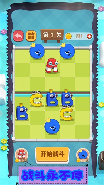 勇敢进击吧是一款很有意思的休闲闯关小游戏,游戏以英文字母为主角,每一个字母角色都拥有不同的能力,可以给其他的字母带来不同的伤害,玩家可以挑选你自己喜欢的字母,与其他的字母展开激烈对决,游戏玩法非常新颖,特别有意思。