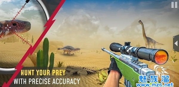2、升级武器装备,解锁新的狙击点,通过智慧和勇气在恐龙横行的世界中生存下去。