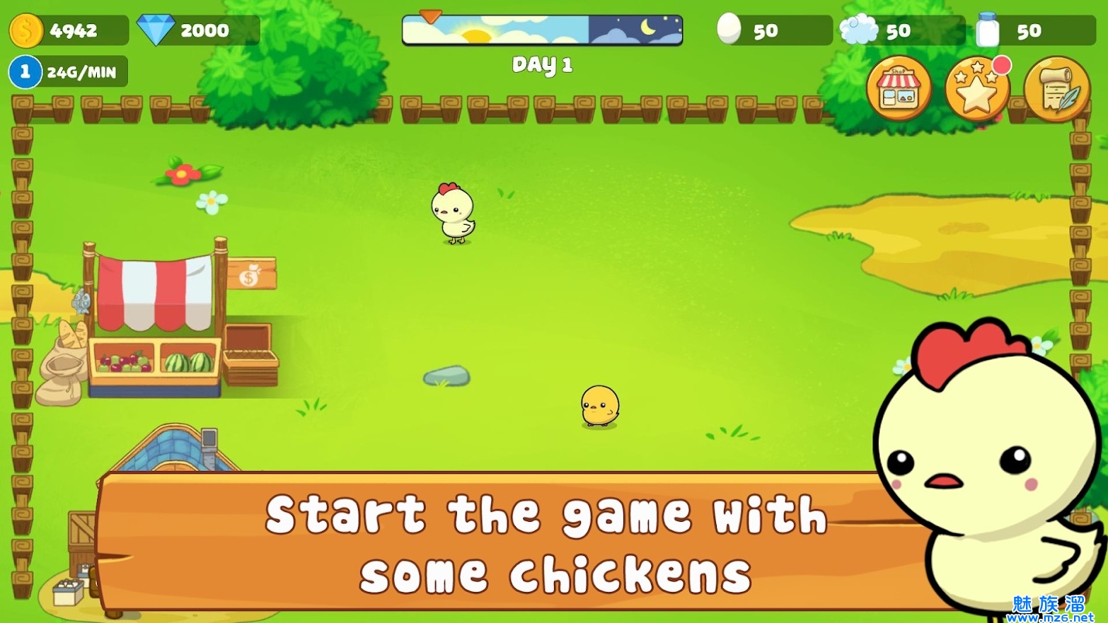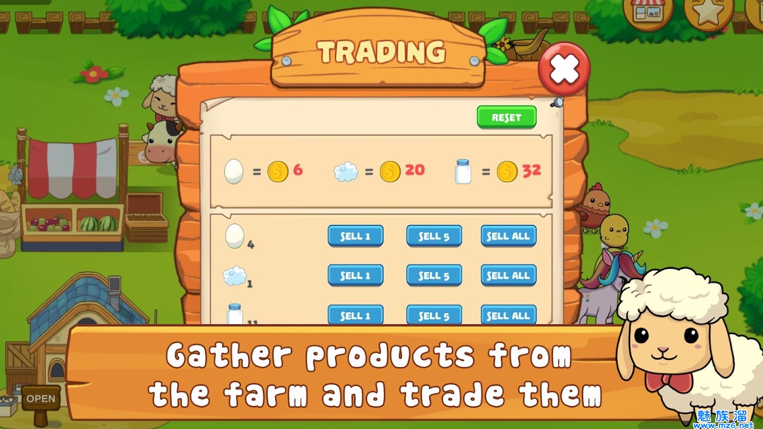 1、收集鸡蛋,羊毛和牛奶进行贸易,每日任务系统和有趣的挑战。