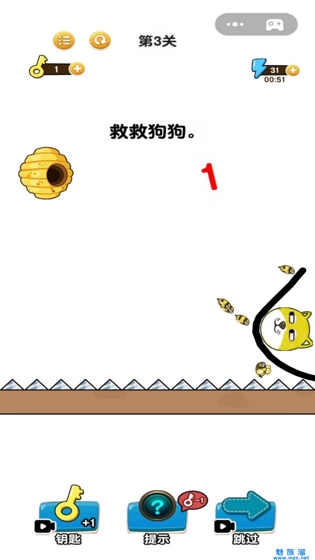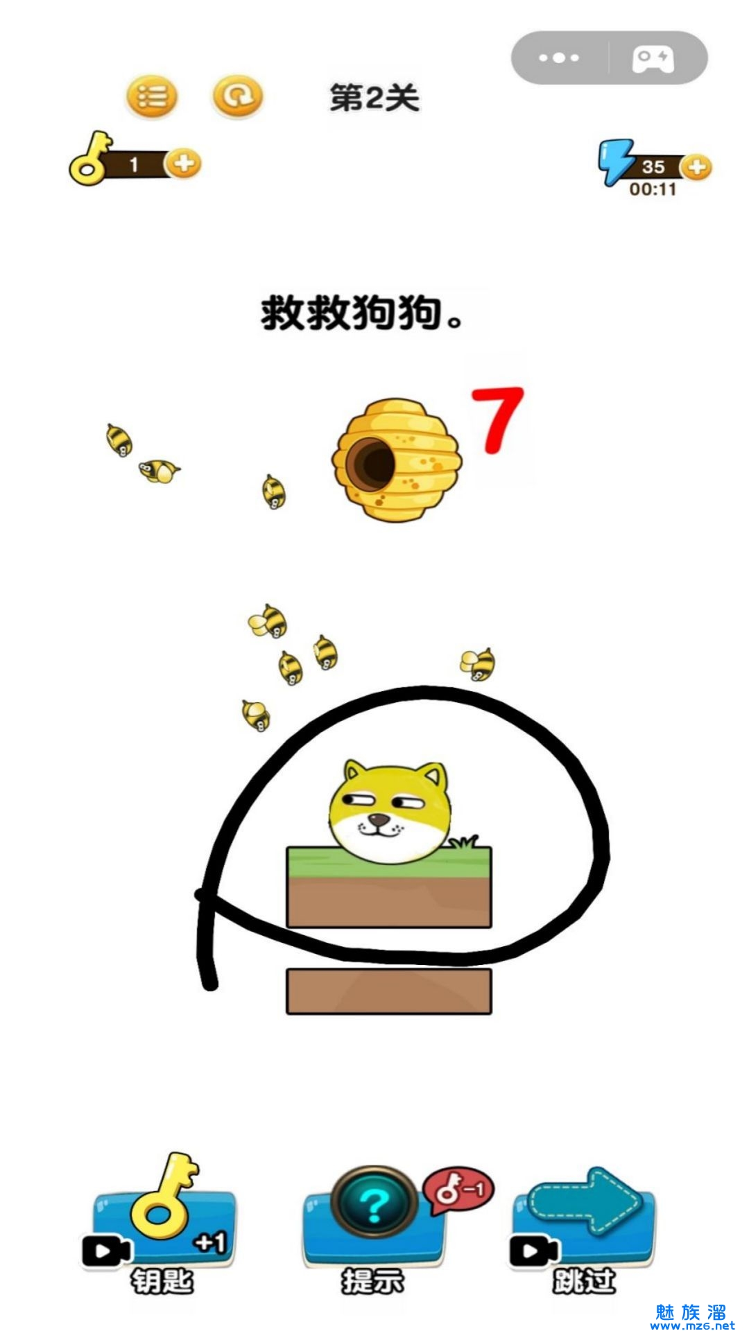 画线我特牛游戏是一款好玩的趣味休闲画线闯关游戏,在这款游戏中,玩家需要通过画线来解决各种的问题,并保护一个狗头,不要被蜜蜂蛰到脑袋。游戏中还有提示玩法,玩家可以点击提示来帮助自己进行解答。感兴趣的小伙伴们还咋在等什么,快来下载试试吧。