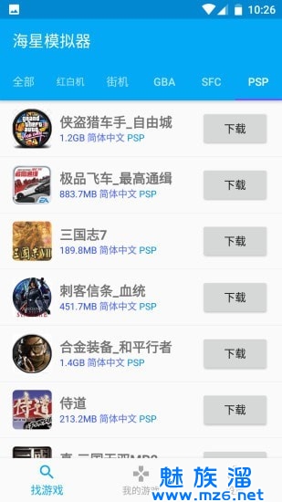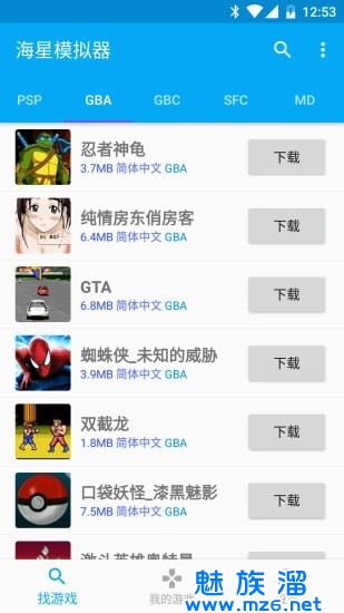 7、支持导入自己的ROM,也集成了游戏ROM市场,点击下载即可启动游戏