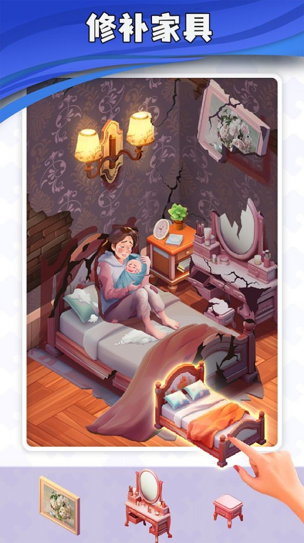 2、收集道具和工具,用于修复不同类型的房屋问题;