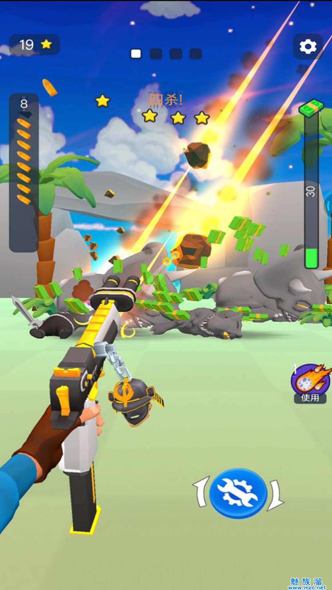 3.精准瞄准:通过手机触摸屏幕实现精准瞄准,并利用各种武器和工具来对抗恐龙,提升狩猎技巧和反应能力。