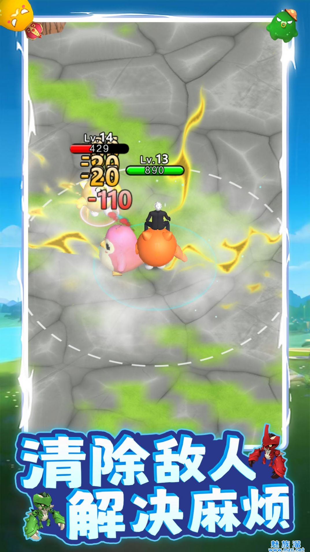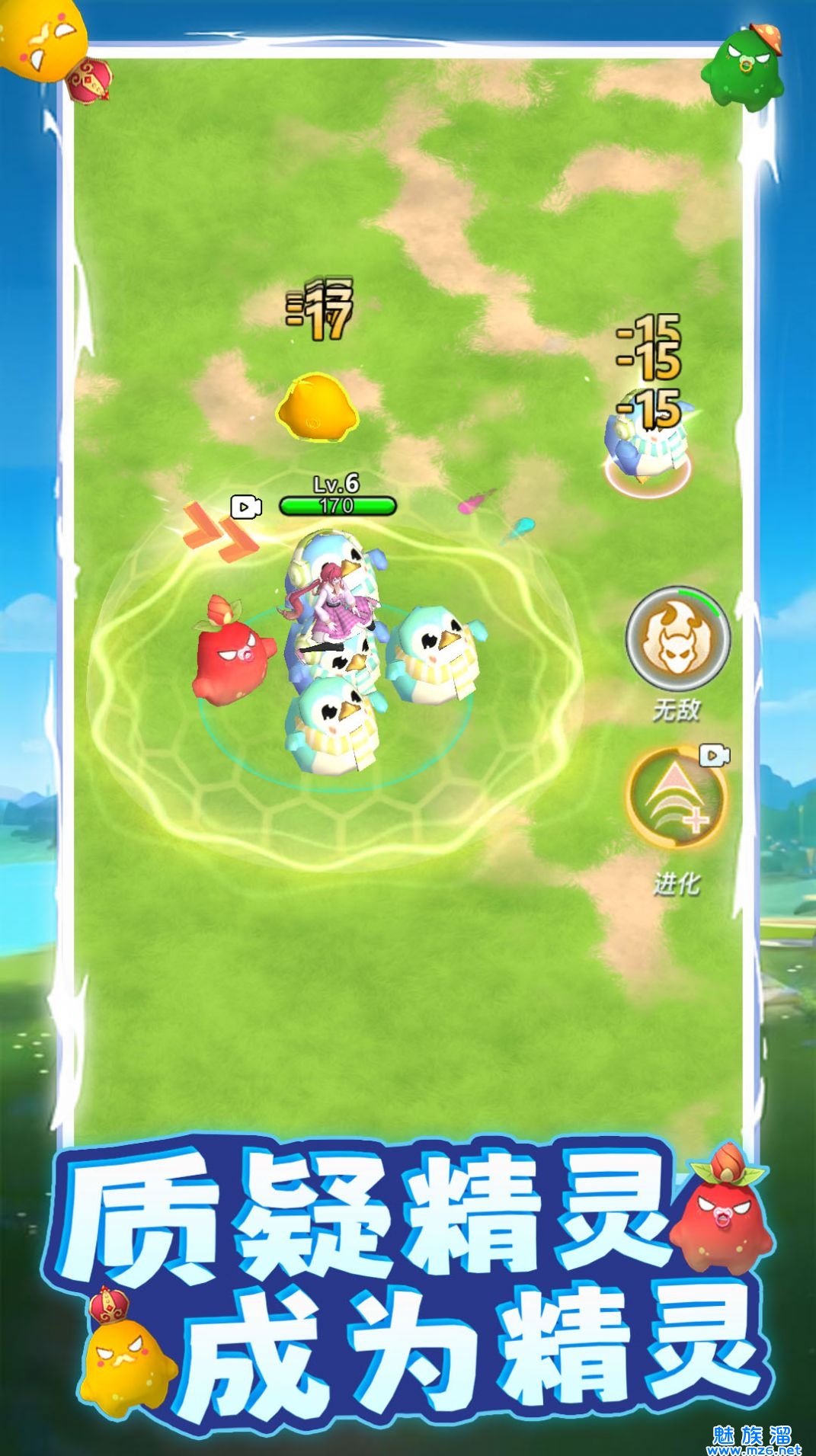 1、独特的玩法,开启精彩的历险,操控精灵进行不断的作战。