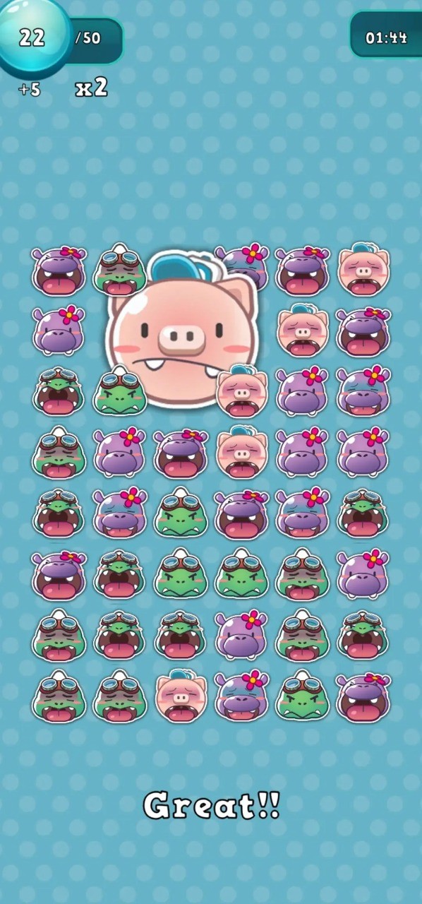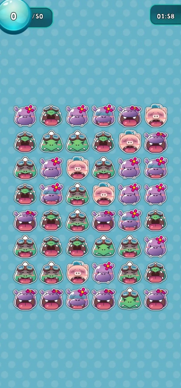 2、挑战不同难度关卡,利用智慧匹配消除欢喜兽,达成目标分数或任务要求;