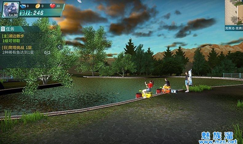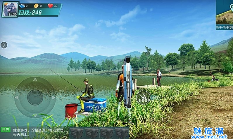 完成人物选择后,玩家将进入一个3D垂钓水域,将有一位漂亮的小姐姐接待你,她叫“安琪儿”完成任务将会获得一套游戏中的高级钓具,跟着指引就可以啦!