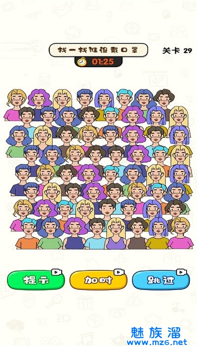 这款游戏的画面关卡内容很简单,有着不同的人物等你来完成,全新的玩法等着大家尝试冒险,通过找茬还可以解锁后续关卡内容。
