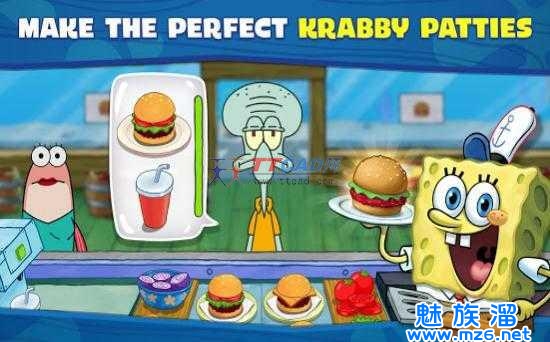 1、海绵宝宝大闹蟹堡王破解版以动画角色为原型打造的经类游戏,每天提供早餐,午餐以及晚餐,其实都是汉堡包;