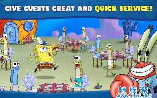 4、妙趣横生的海底世界,和海绵宝贝一同在这个游戏中经营美食。