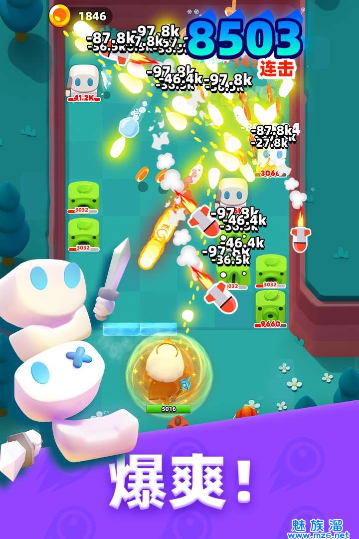 2.但是敌人也是会攻击的,敌人的实力会随着游戏回合数的增加而提高,之后如果敌人移动到了玩家跟前就会对玩家造成伤害,所以玩家要在敌人靠近前优先将其消灭掉。有的回合中也会刷新出远程小怪或者小BOSS利用远程攻击玩家,当玩家被攻击后血量会下降,玩家必须攻击带有血包的小怪才可以回血,不然等血量为零的时候玩家就闯关失败了,如果失败就得重新再来。而通关则需要将boss击败。这样的玩法让喜欢割草的玩家直呼过瘾。
