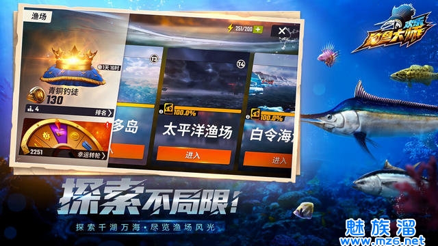 (1)在游戏中,想要解锁渔场,只需要达到一定等级即解锁对应渔场。