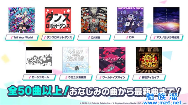 2、歌曲方面,本作收录了大量的高人气VOCALOID乐曲,并与高人气VOCALOID P们合作推出新的原创歌曲。
