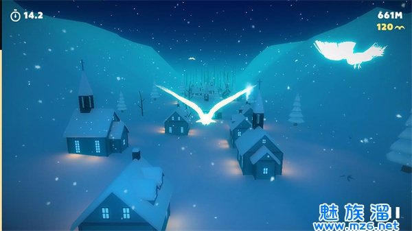 4、鸟儿在飞行了10秒钟后会因能量不足而坠落,所以我们需要在这段时间里不停地与其他发光的动物接触才能恢复能量。这些放光的动物除了其他鸟儿外还有地面上的兔子、山羊等等,提升你的等级可以解锁更多的动物