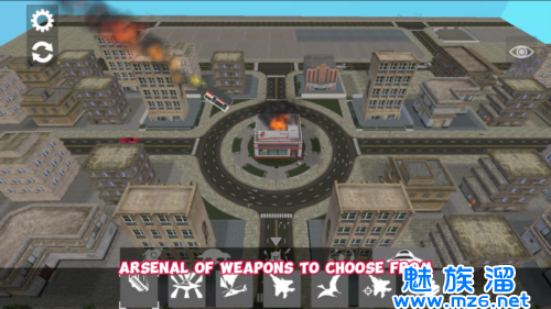 运用一切高科技武器来进行毁灭行动,破坏所有进入你视线中的建筑。