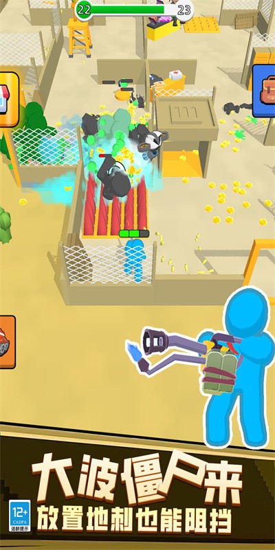 2.放置玩法和内容,多种模式,免费体验打僵尸的乐趣。