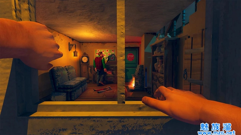 5、进入这个阴森的房子里我们需要躲避这个家里的老头,前往地图上指示的地方。