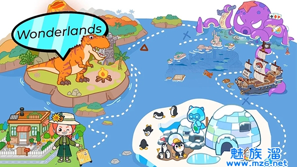 恐龙岛里场景多,场景里面惊喜多!使用道具挖掘隐藏剧情,激活角色无厘头的动作。猜猜看,如果你给霸王龙喂一勺辣酱,会发生什么呢?