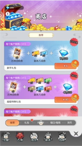 4、点击“商店”可以了解到新手礼包和特殊礼包。