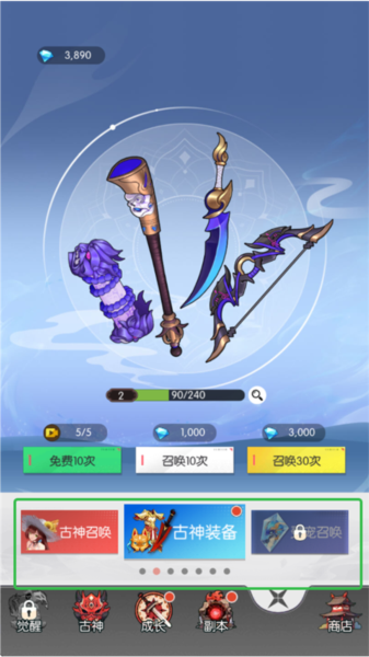 6、玩家还可以进行古神、装备、灵宠召唤。