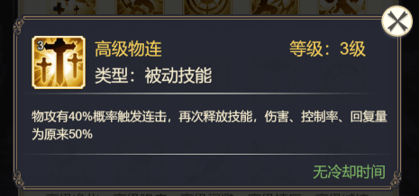 点评:当造成大额伤害时有概率使对方眩晕,推荐让己方的核心输出英雄使用,能提供一定的控场能力。