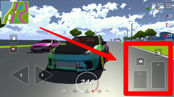2.竞速对战:右侧按钮控制油门与刹车,灵活运用加减速技巧,能帮助玩家超越对手赢得最后的比赛。