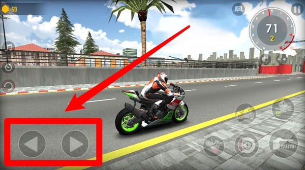1.玩家通过屏幕左下的方向键操控摩托灵活转向,在高速行驶时保持平衡,体验畅快刺激的极速竞速感。