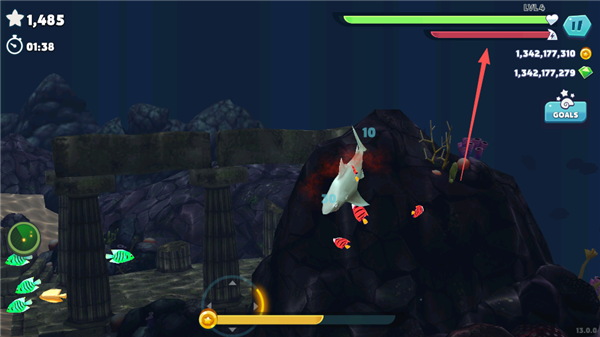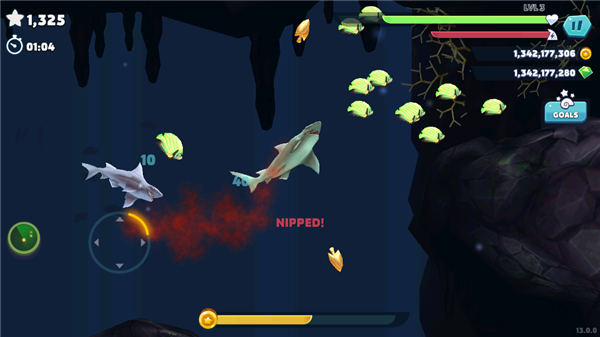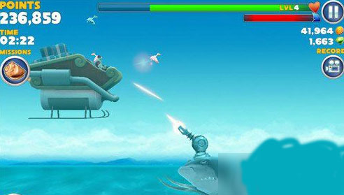 3、采用触摸和重力感应两种操作方式,简单易上手。每条鲨鱼都有各自的任务需要你去完成,同时还有15个分布在地图各个角落的隐秘任务等你去发掘,玩家将通过完成成就获得极高的分数和额外金币!