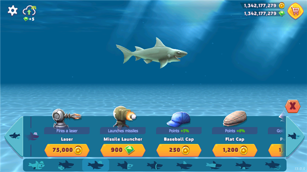在游戏中玩家可以使用金币对鲨鱼的速度、血量、撕咬的范围进行升级,升级后可以使得鲨鱼的捕杀能力有了很大的提高。玩家在进行游戏的时候能升级就尽量的升级吧!