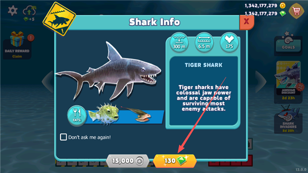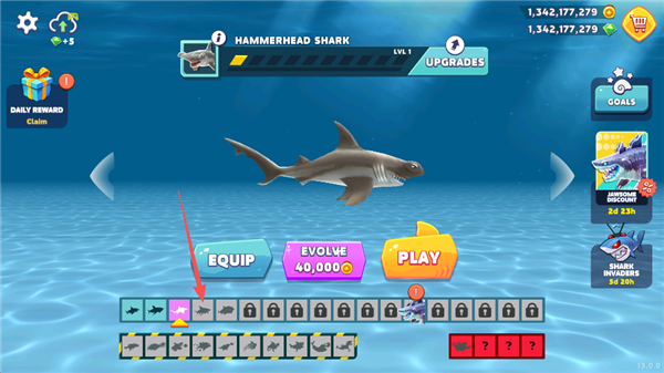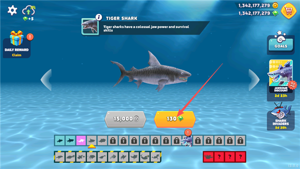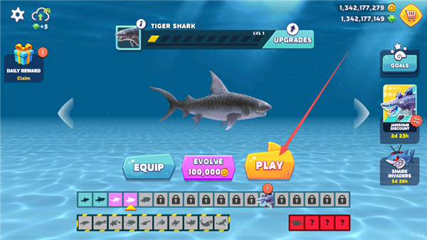 1、解锁鲨鱼无需打开商店,点击下方鲨鱼展示框