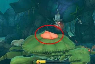 1、游到螃蟹上方,大概一个钳子的距离,差点被打的地方吸引攻击。
