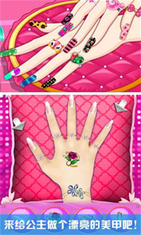 公主美甲沙龙是一款趣味十足的休闲模拟美甲游戏,以“创意美甲设计”为核心,为玩家打造出一个色彩缤纷的美甲创意工坊。游戏画面绚丽多彩,从柔和的马卡龙色系甲油到闪耀的水钻贴纸,每一处细节都充满少女心;搭配一双纤细漂亮的虚拟手作为“画布”,让美甲设计更具真实感与代入感,增添不少趣味。