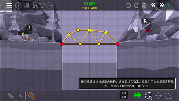 3、游戏里的格点系统进行了优化,让桥梁搭建变得更为精准与便利。