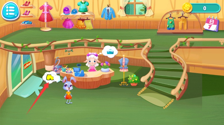 1、初次启动游戏程序后点击开始按钮,即可进入动物时尚裁缝店的经营体验环节。