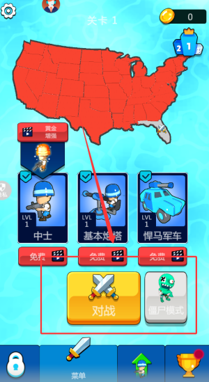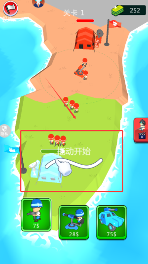 1、初期登陆岛屿需快速熟悉基础操作与地图环境,通过完成指引任务掌握资源收集与士兵召唤机制,利用初始武器对抗弱小敌人积累金币经验。