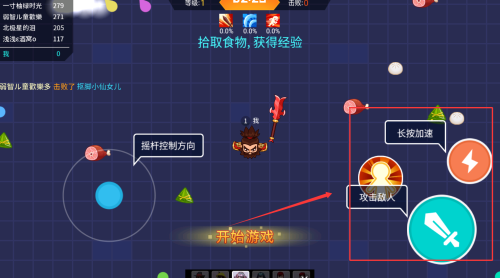 1、进入游戏后,您需要操控角色在地图中不断移动,通过吞食散落的经验球来提升自身等级与属性规模,增强作战能力。