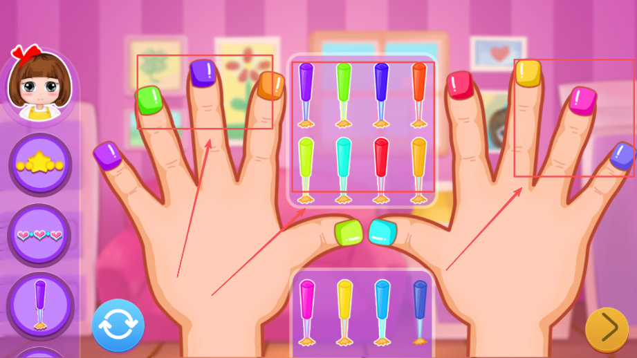 2、操作简单易于上手掌握使用便捷,通过拖拽和点击即可完成美甲设计,适合儿童操作和独立探索学习过程。