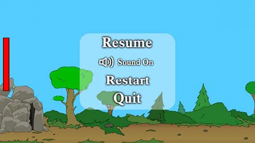 2、游戏菜单的四个选项分别是:返回游戏、声音开关、重新开始、退出游戏。