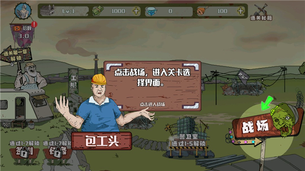 3、按照包工头的指示,我们点击战场。
