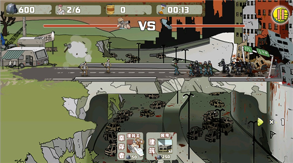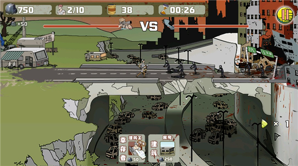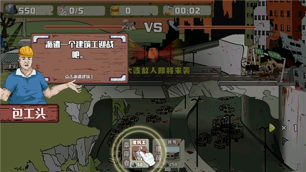 6、首先派遣一队建筑工人前去与僵尸作战。
