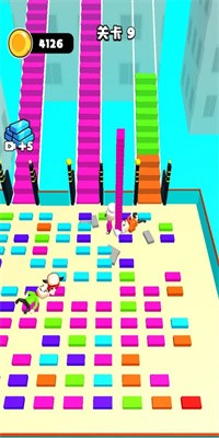 2. 众多玩家汇聚一堂,展开速度上的较量,大家收集木板搭建桥梁,通过走捷径来加速前行。