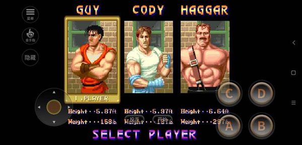 在这款游戏里,总共有三位角色,他们分别是身着白色的科迪、一身红色的凯,以及大力士哈格。除了具备通用技能之外,每个角色还拥有各自独具特色的技能。