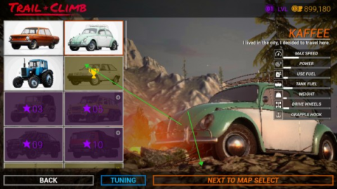 2、在车辆选择界面,按照自身喜好挑选一辆心仪的车辆,接着点击“next to map select”。