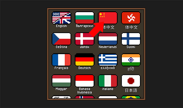 1. 首次进入游戏,玩家会被要求选择语言,通过国旗选择简体中文即可。