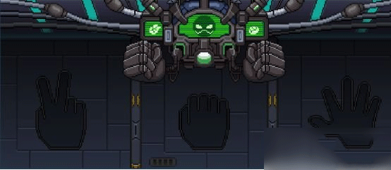 此房间的 BOSS “人如房名” 是个猜拳机器人。它会与玩家进行剪刀石头布的游戏,要是玩家输了,它便会突然下砸偷袭你哟~也不知道攻击连接 BOSS 的电线,是否会产生伤害值呢。