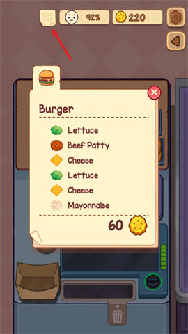 1. 当玩家打开游戏,便会收到顾客订单,若想查看详情,点击左上角菜单即可。【如需具体讲解,也可观看视频介绍】