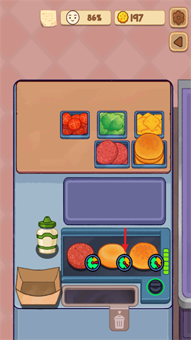 1、游戏将细致展现汉堡制作的各个步骤,先是烤制面包,接着煎烤肉饼,然后切割蔬菜,最终完成汉堡的组装。